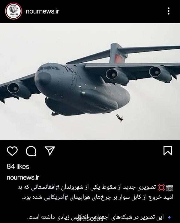 伊朗观察者网,半官方的努尔新闻网(Nournews)为了强调阿美的失败,P图P了一张平民从C-17上掉落的照片。但是由于小编实在是过于缺乏军事常识,他们使用的是运20的照片,目前该报道已被他们自己削除。笑死我了。
