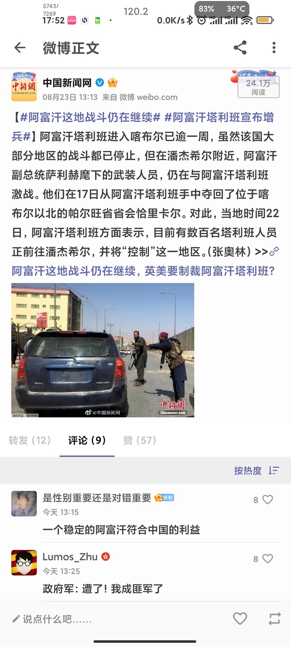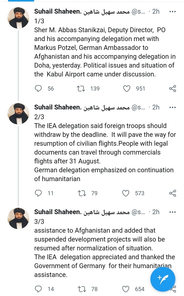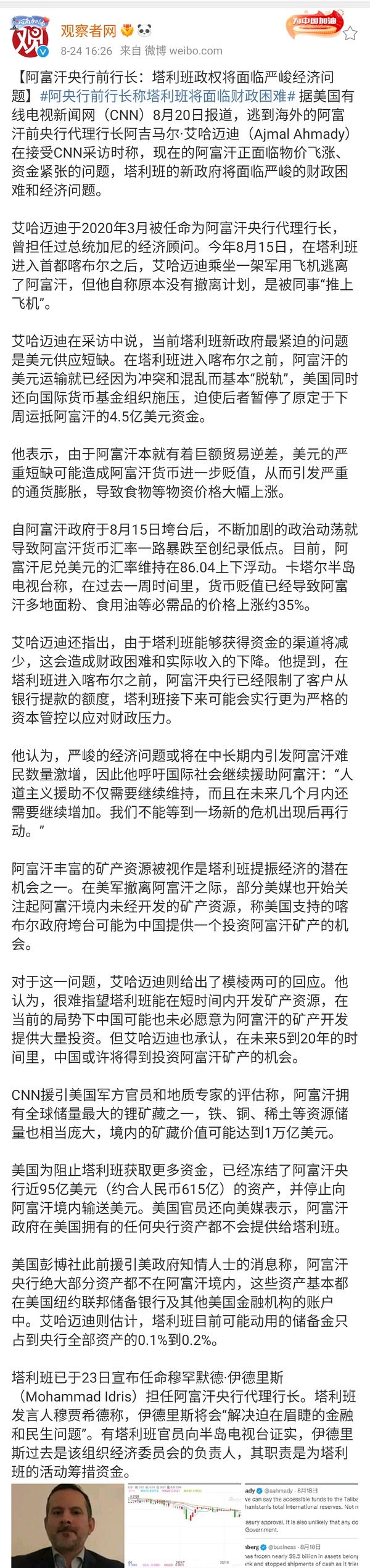 Link Icon 另外,很可能会G7联合制裁TLB阿富汗,到时候TLB拿什么发工资?阿富汗公务系统包括冰队已经五个月没发工资了(所以一碰就倒)。