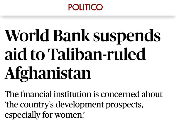 世界银行停止给阿富汗援助