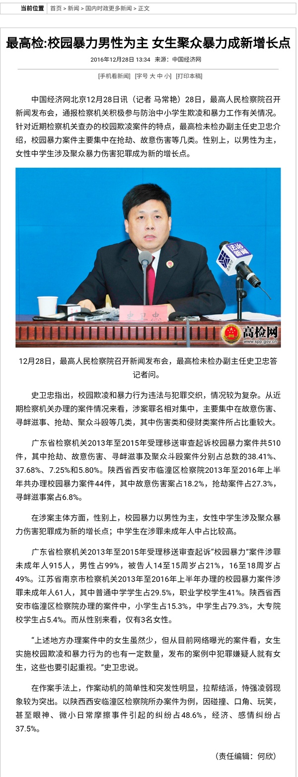 这甚至是一个不需要统计数据、只需要用常识去判断的问题。波友们不妨回忆一下自己的初高中时期,班级里的小混混、大哥、校霸们性别是男是女呢?他们就是校园暴力的主力军。泥潭贵物死妈了。