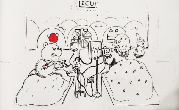 有画画大手子吗,我有个构思脉冲2021/08/27 12:56:09 整体就是契丹跟盎撒两个癌症晚期的病人在病房里互相拿枪指着病床旁边的桌子上堆满了抗癌药护士进来通知俩人准备化疗看病的福摩萨,欧盟,盎撒,日本,韩国,带英表情各异 Loading Spinner