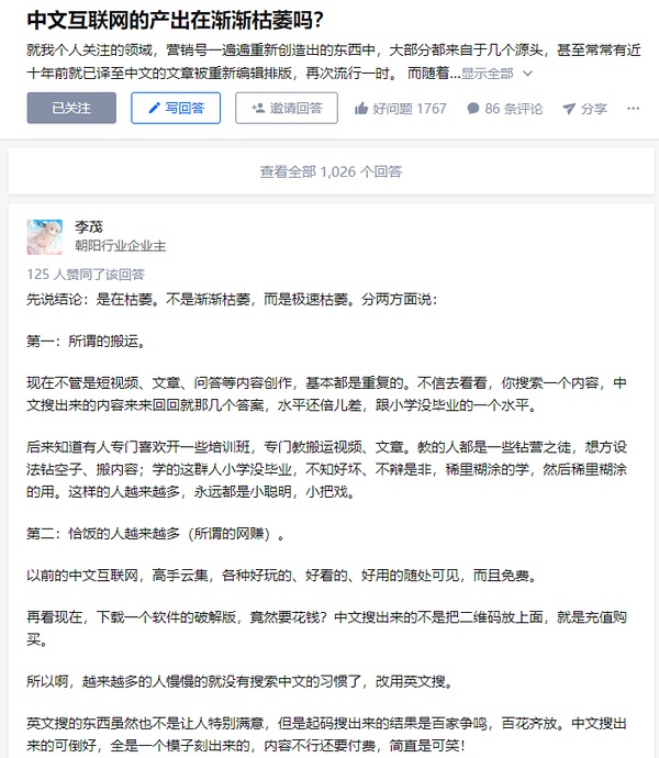 互联网在各路迫真开放共享信息公司的流量圈地运动中被分割的七零八落。全世界的网络精神本来就正在死亡,只是cn特别快而已