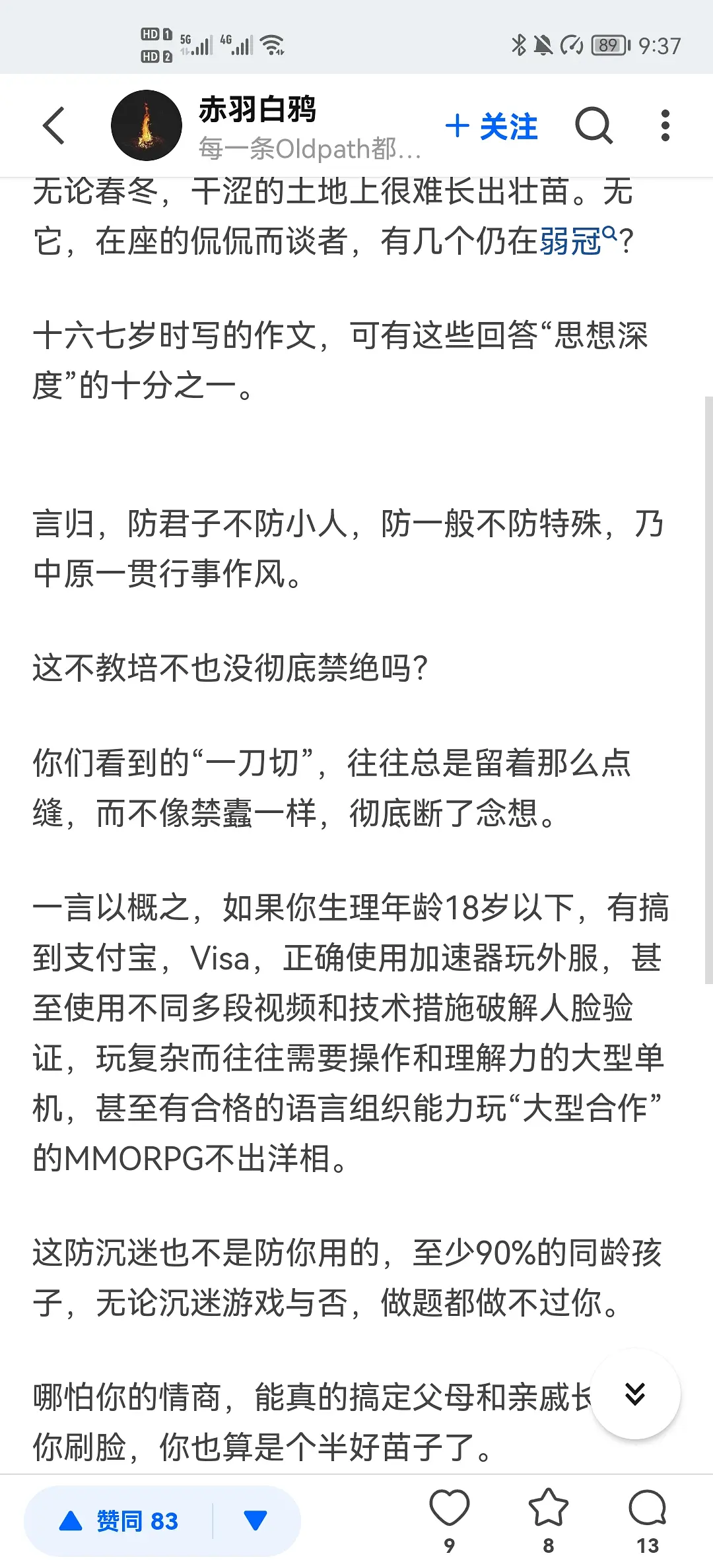 我只是觉得没有人应该被能够剥夺缓解压力避免重开的娱乐项目