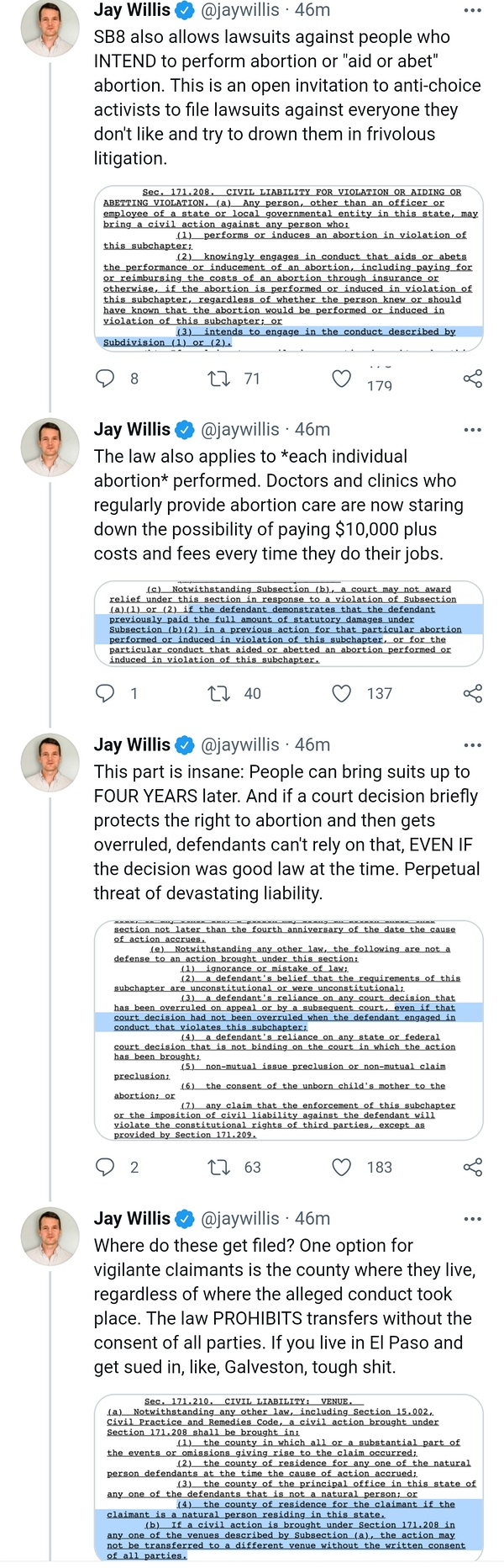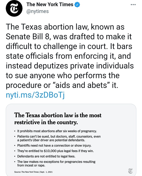 查了一下,不止医生,任何协助该女性获得手术的人都可以被起诉罚款,包括送去诊所的出租车司机。不懂得州GOP为什么要这么疯。