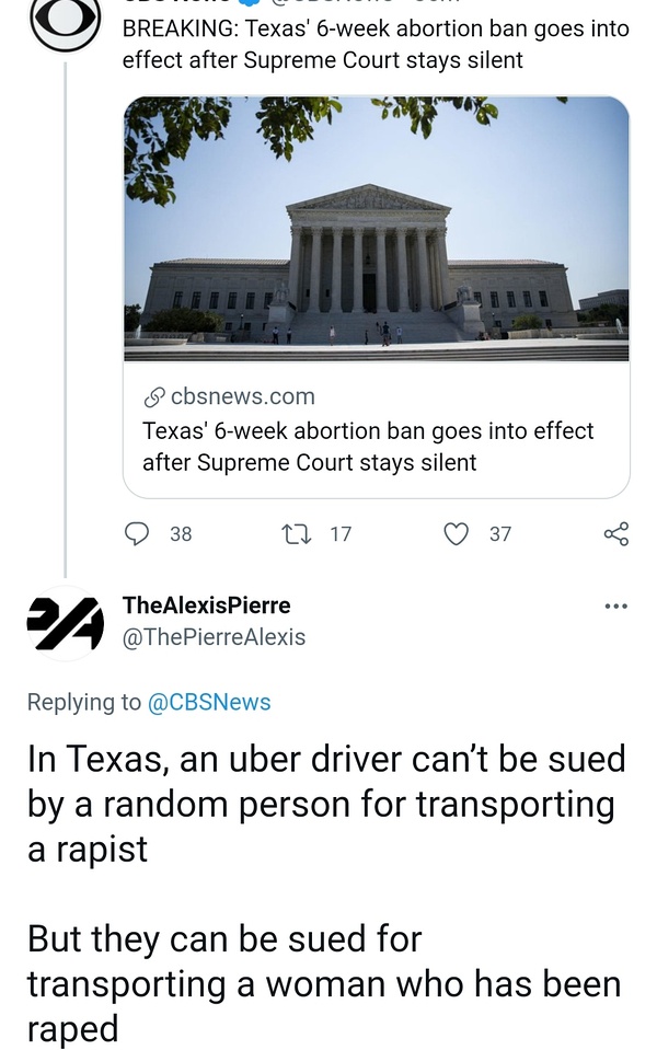 Link Icon 这个法最🐮🍺的点是强奸也不是例外情况,所以如果有人强奸女性怀孕,然后女性在6周之后才堕胎,那么强奸犯或者任何人都可以起诉医生,胜诉就可以获得1万美元和律师费。