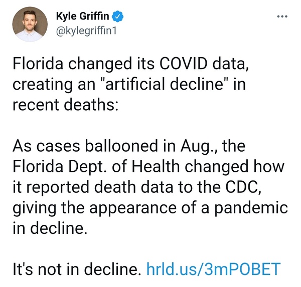 佛州疑似伪造篡改八月份的COVID死亡数据