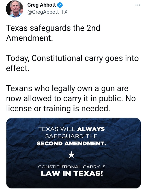 得州今后任何人只要办了持铳证都可以在公开场合持铳,不需要任何认证或者训练