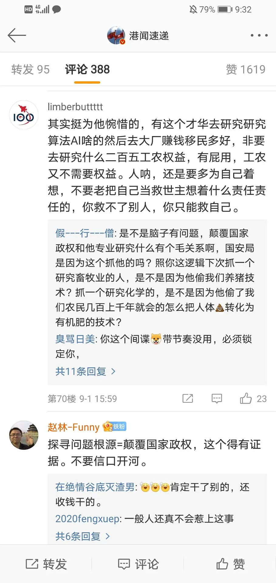 合理怀疑开始机器开始进行反应了。根据我的消息,两天前你清内部论坛对此事都表示appalled,今天开始有人表示“早该抓抓了”、“没问题抓你干嘛”,很难不认为是团委的任务