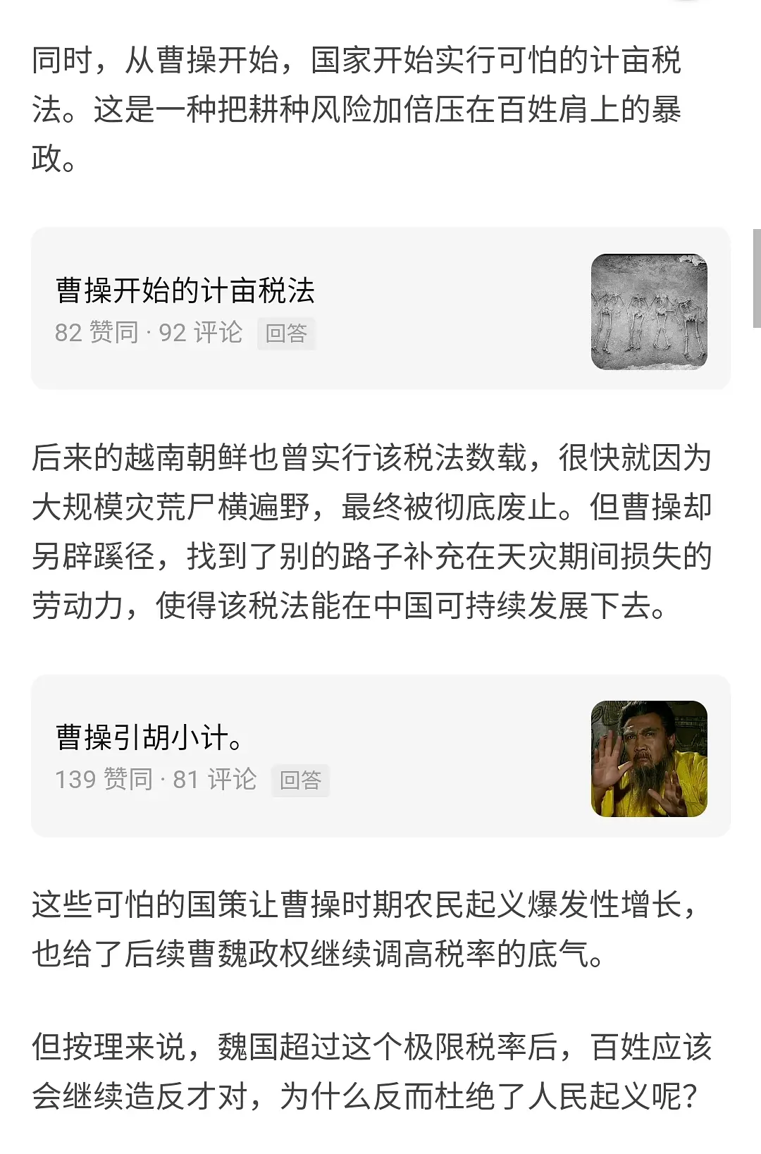 曹魏通过加带剥削力度消灭反抗的伟大实践あかざあかり2021/09/03 05:42:32 剥削力度超过一个阈值以后基本就可以彻底消灭反抗了(代价是经济停滞)https://www.zhihu.com/answer/1766647690Loading... Loading Spinner