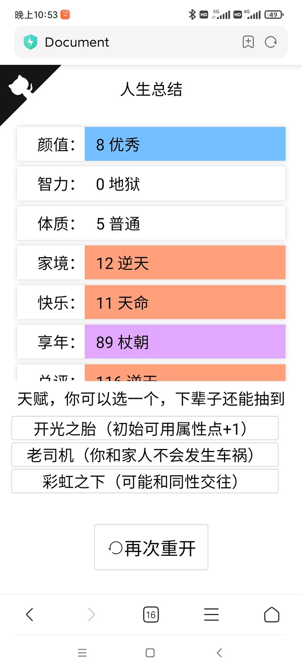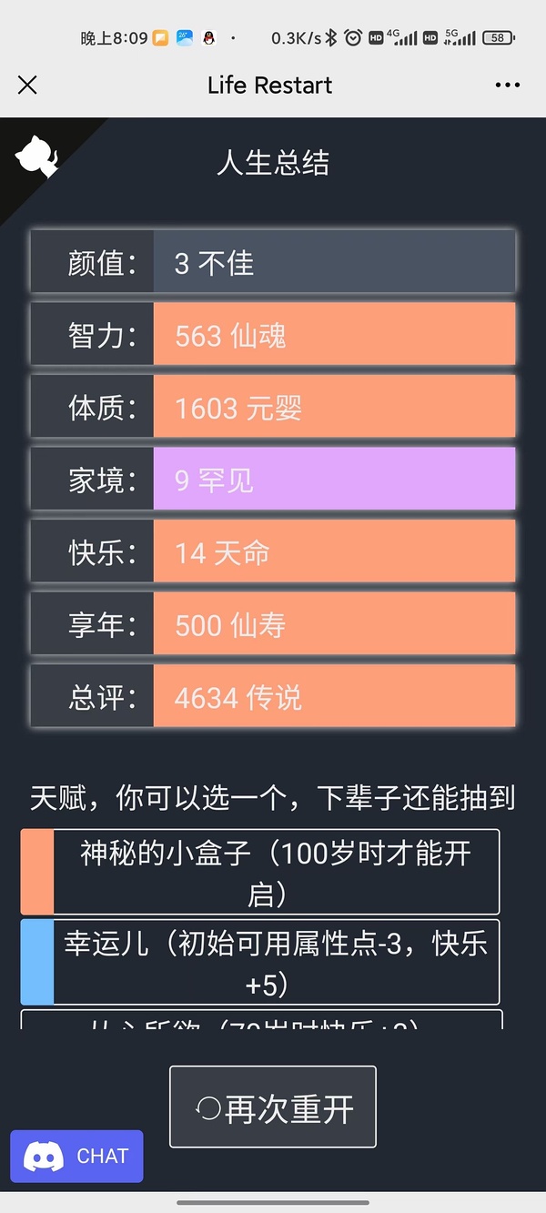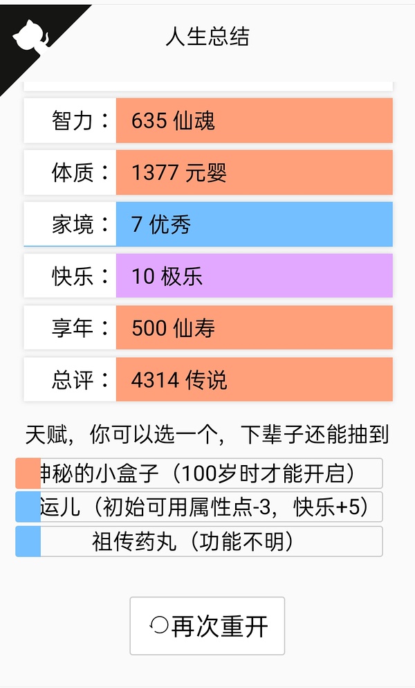 我试了很多种,发现家境是唯一神