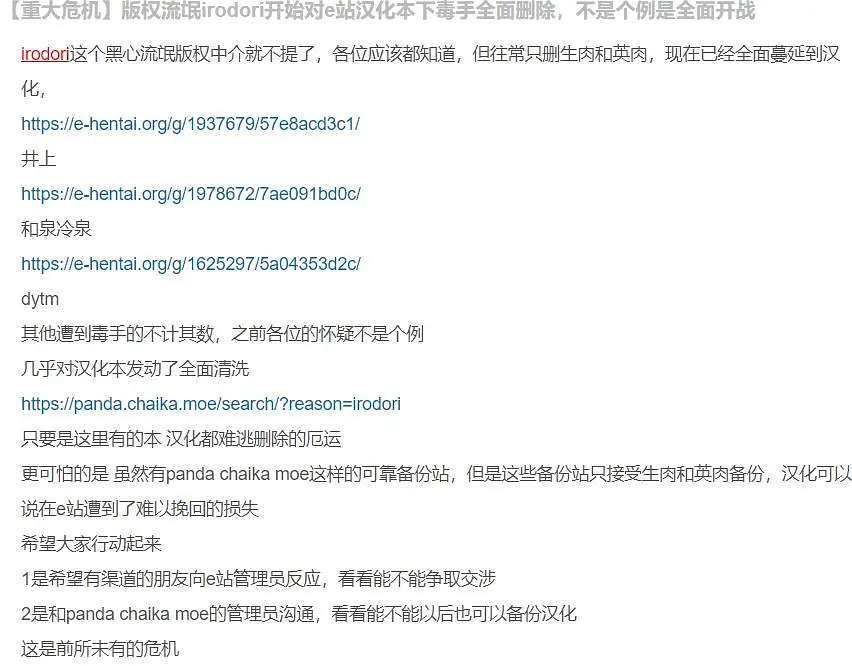 E站毫无疑问已经是生态最和谐发展最完善没有之一的圣地了,但也造成了过度中心化的阿喀琉斯之踵,这波打击可以说是毁灭性的,生态没了,很多东西就算有正版,读者也怕是无法知晓了