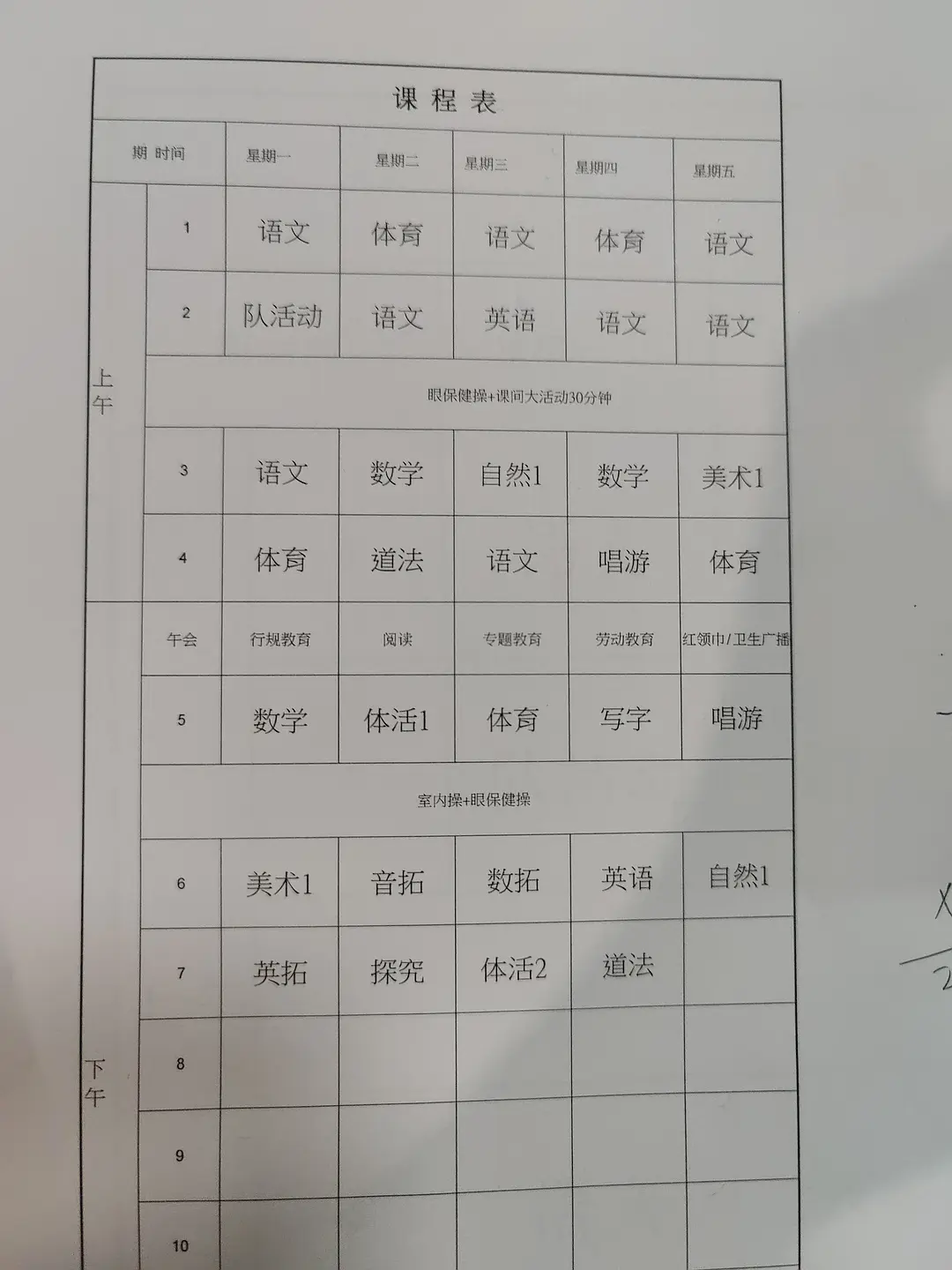 双减后的课表