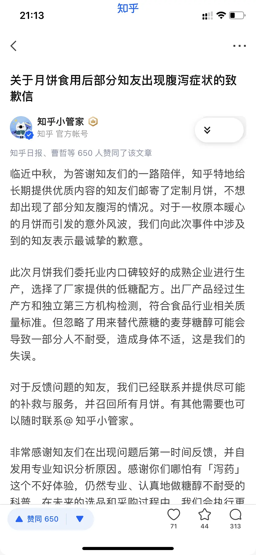 知乎给旗下大V集体赠送月饼,结果多名大V吃了后变身喷射战士