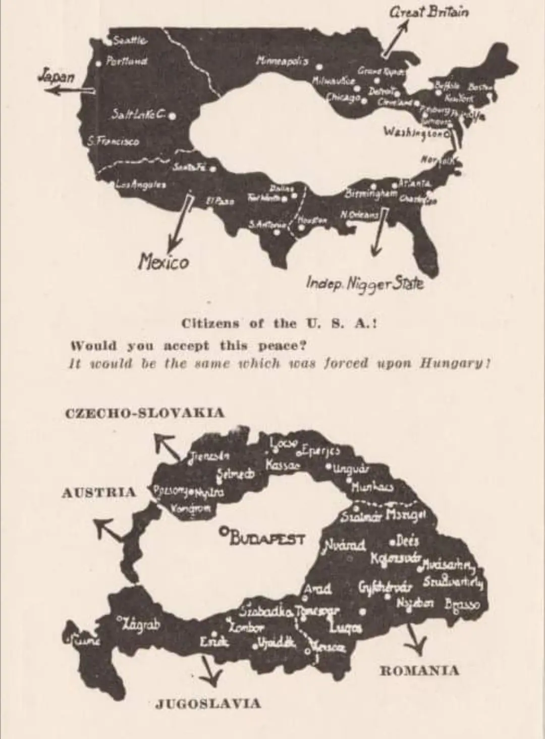 匈牙利战间期宣传收复领土的宣传画アッカリ~ン2021/09/11 17:09:05 向其他国家国民宣传,如果他们签订了类似《特里亚农条约》的协议,会丢掉多少领土。来自推上的@propagandopolisLoading...用英国作类比Loading...用意大利作类比Loading...用美国作类比 Loading Spinner