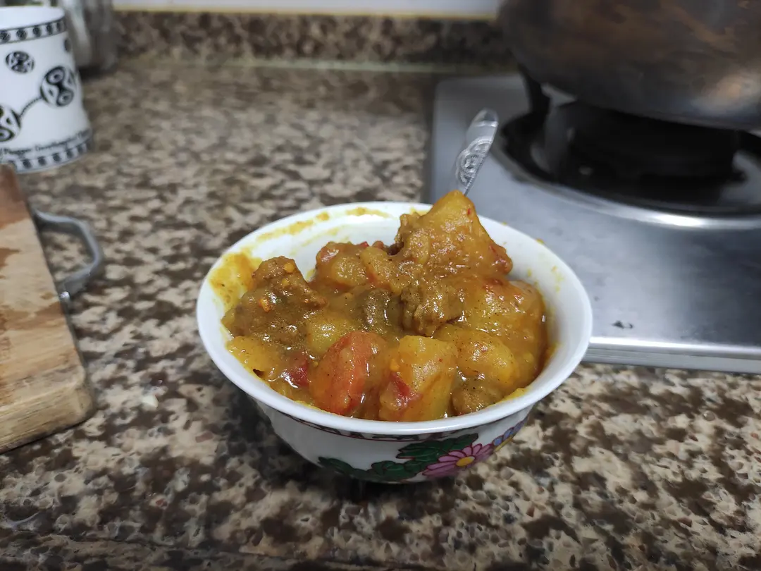 晚上在学校食堂吃了土豆炖牛肉,看上去跟你这个差不多,虽然味道很烂,完全浪费了食材,,,