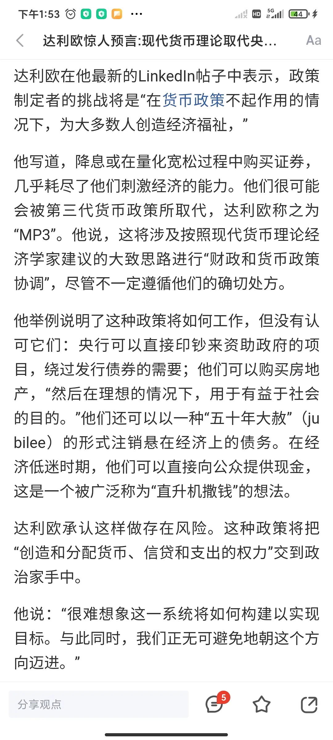 我想说央行这种欲望的发行机关,在生产力迸发的时候,产业革命之际,确实可以用钱来激发人的干劲和和从事风险投机的勇气。但是所有这些无限可印的纸并不能直接生出无穷多的矿产,也不能带来永续的物质积累。在产业革命的间歇期,可能多印10张票子,刺激生产力也只能多产出1张票子的价值,那9张口惠而实不至的票子就白白转化为人的痛苦,或许是通胀贬值,或许是投资失败,或许是债务违约。