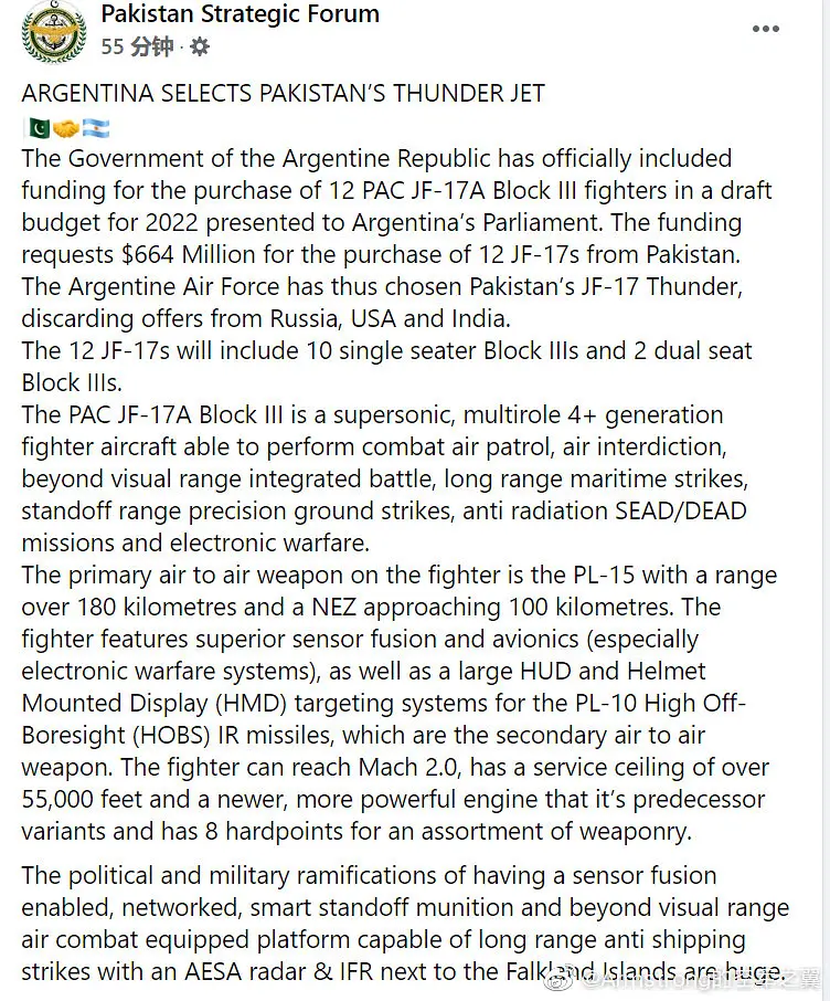 阿根廷买骁龙,伊朗买j10都讲了多少年了