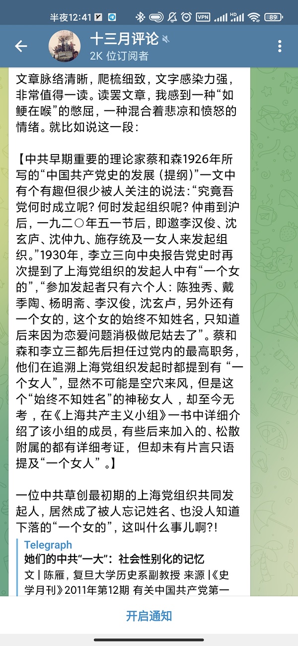 这篇论文发表于十年前,我却是今天在微信公众号“学人Scholar”上第一次读到。在一般印象里,中共“一大”是一段与女性参与毫不相干的“男性”历史。而陈老师从挖掘“一大”背后的女性参与者入手,进一步拷问女革命家的身影是如何在中,共早期党史中被抹去的。