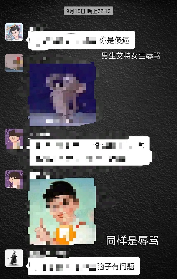 根据女方提供的完整聊天记录,确实是男生首先辱骂女生挑事,才遭到群里女生的语言反击的。这也符合我老人家的判断,实际上就是两边互骂。但是阿卡林拿着支乎郭楠断章取义的不完整的聊天记录,问我“男生哪里骂人了”,我老人家无法回答。