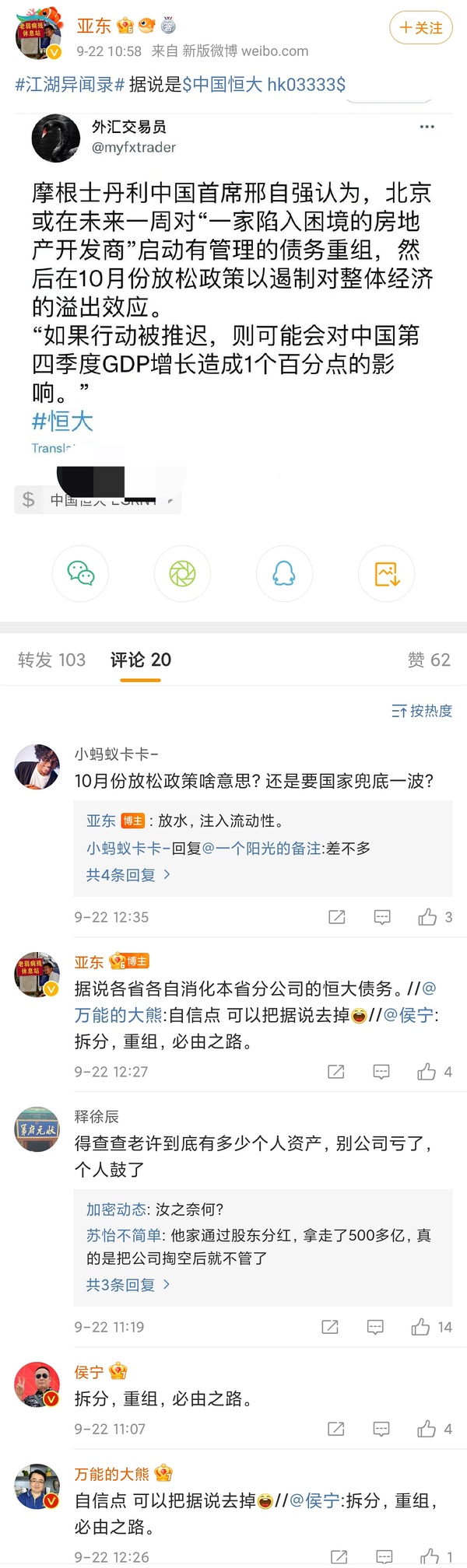 比较迷惑:全球金融资本对hd的态度普遍没有那么悲观。这要救市恐怕更多程度上是给其他房地产商一个心里兜底。