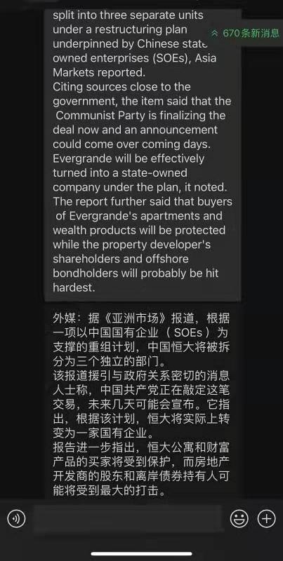 CHINA FINALIZING RESTRUCTURING PLAN FOR EVERGRANDE: ASIA MARKET