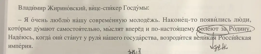 突然想到俄语教科书曾经收录了日里诺夫斯基的一段言论