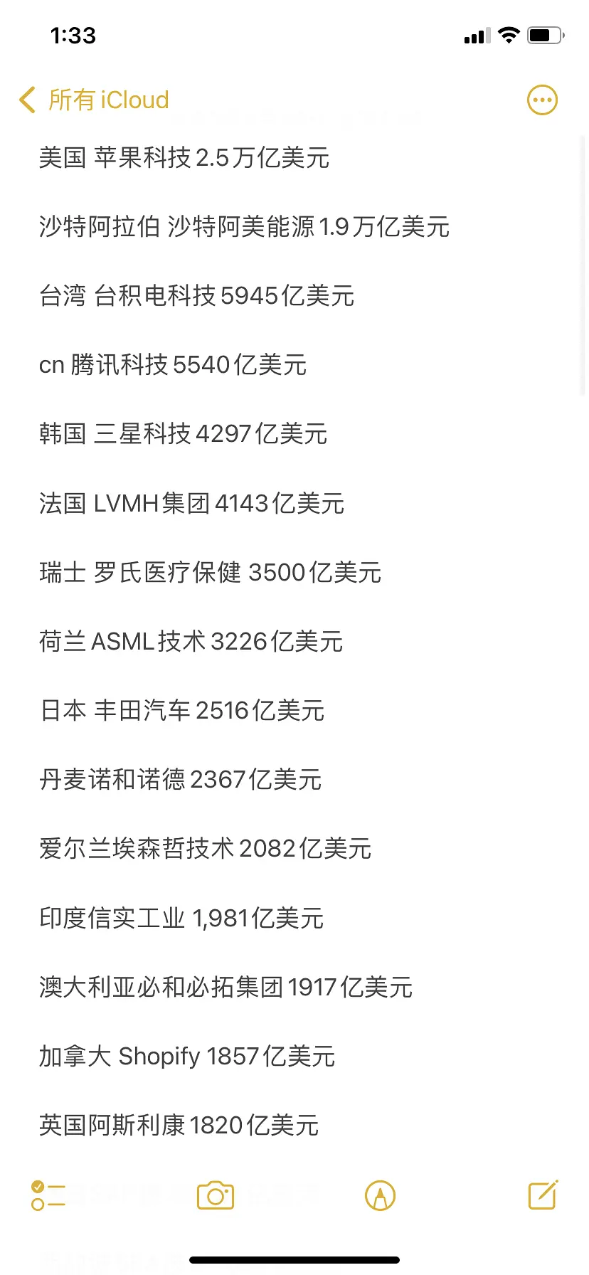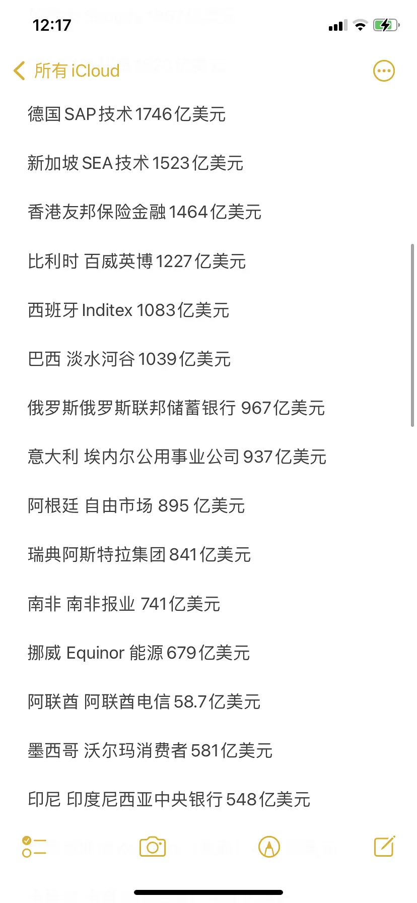 世界各国家(地区)市值最高的企业