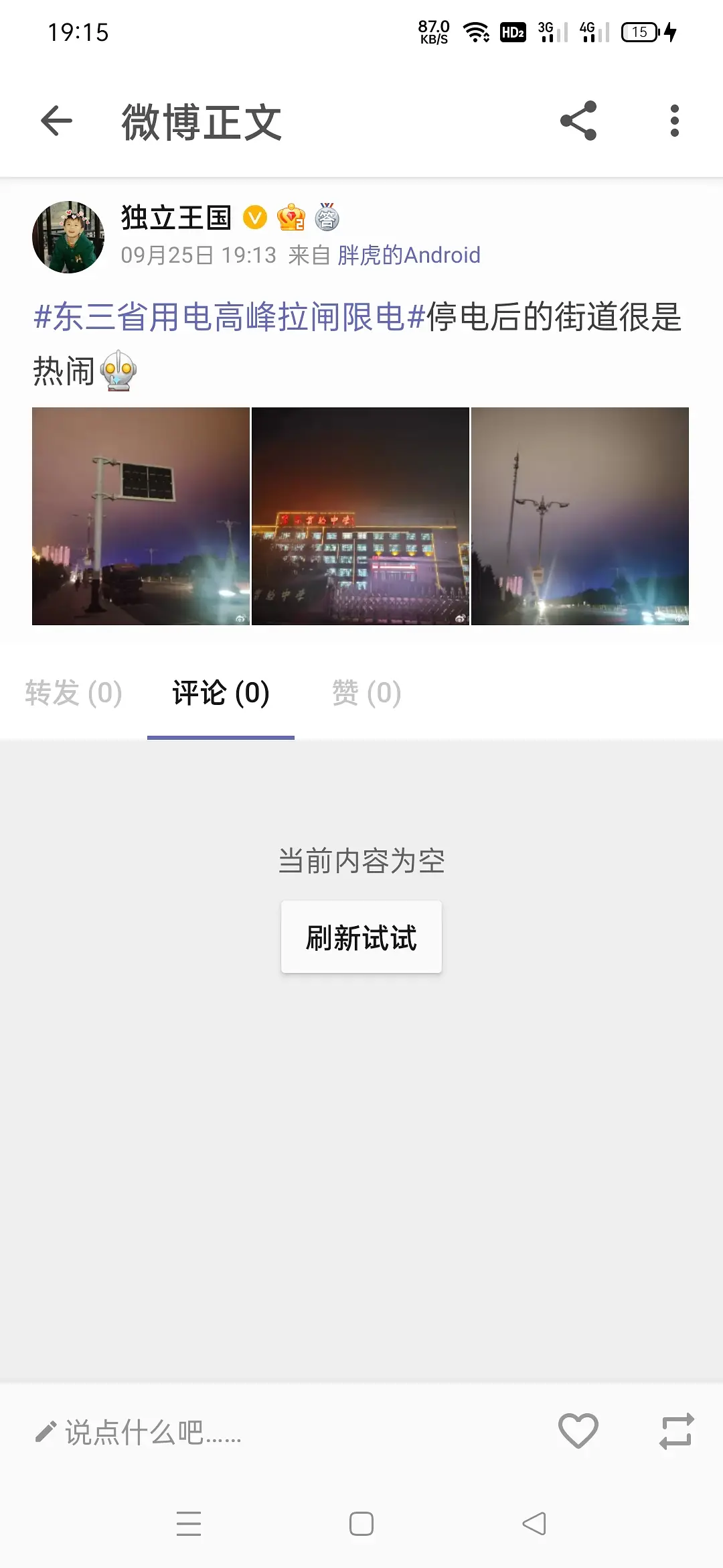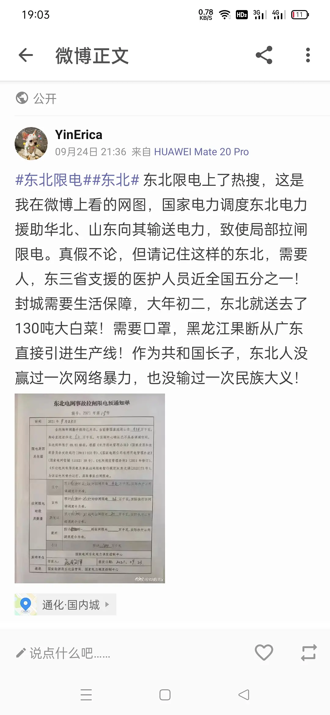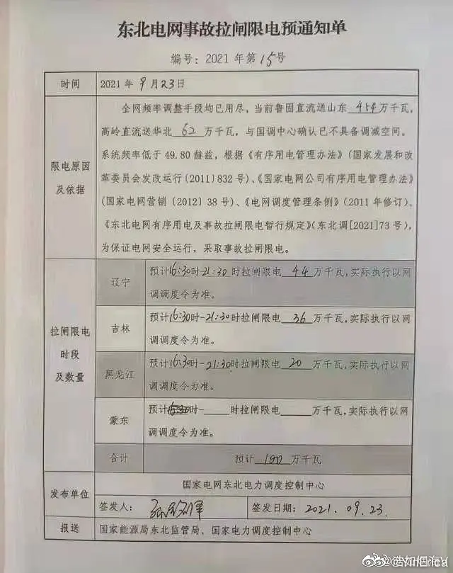 话题#东北限电目前讨论1540条