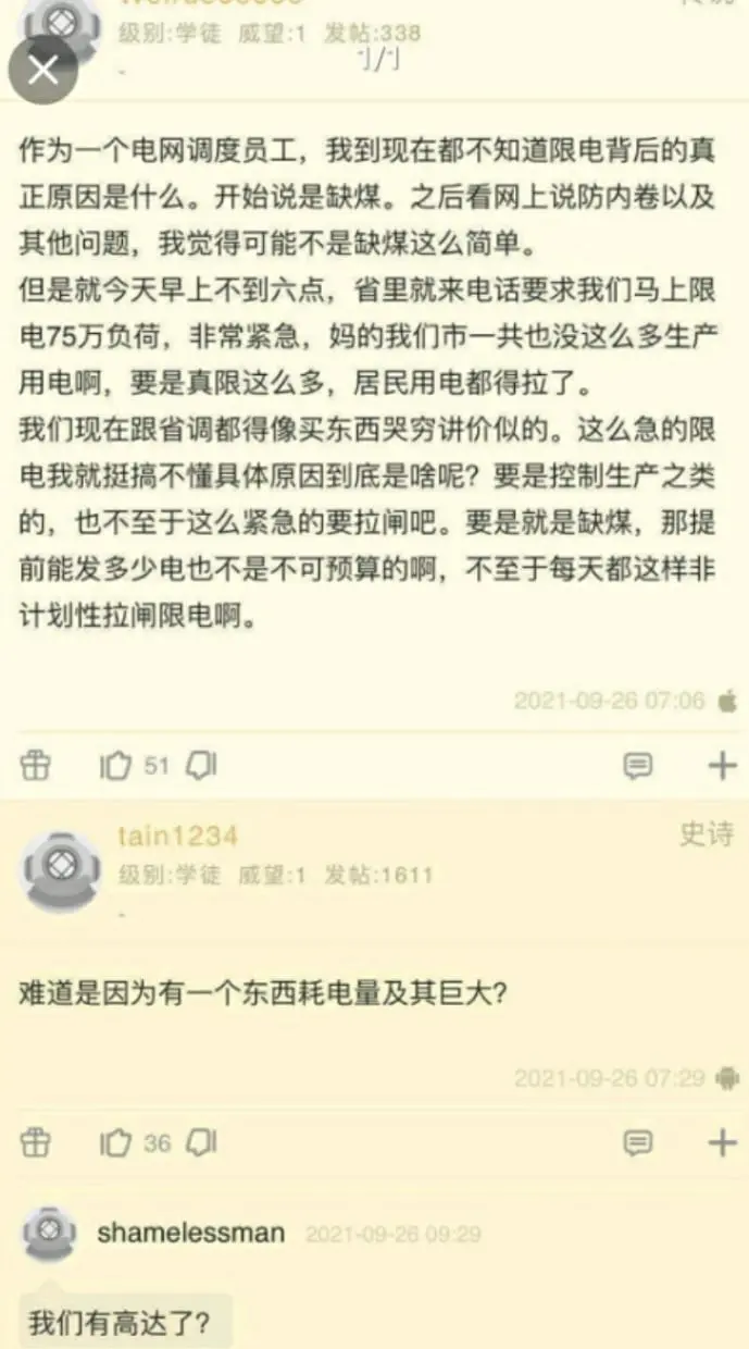 一会儿就好已经出真相了,是碳中和,各地前几个月把指标用光,现在只能停电。
