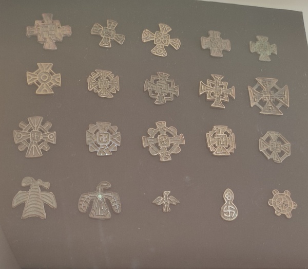这种旋十字遍布全世界的传统文化,从维京到波利尼西亚都有它的身影,我甚至在苏/鹅(只能确定是俄语,近代的,具体年代不清)勋章纹饰上见过它………辣脆的专属“钩十字”反而年轻的像个婴儿
