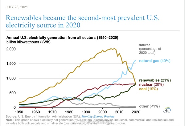 “相比利用煤炭发电,天然气在用于发电时产生的温室气体排放量减少 45% 至 55%”