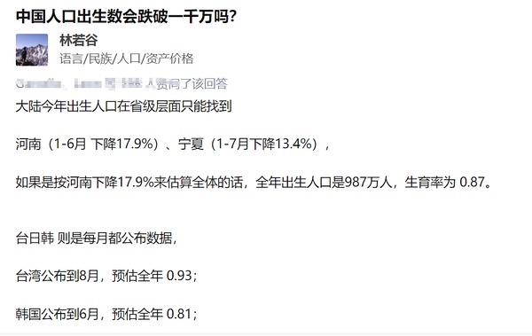 河南今年生育率可能只有0.87,比台湾还低了。。。