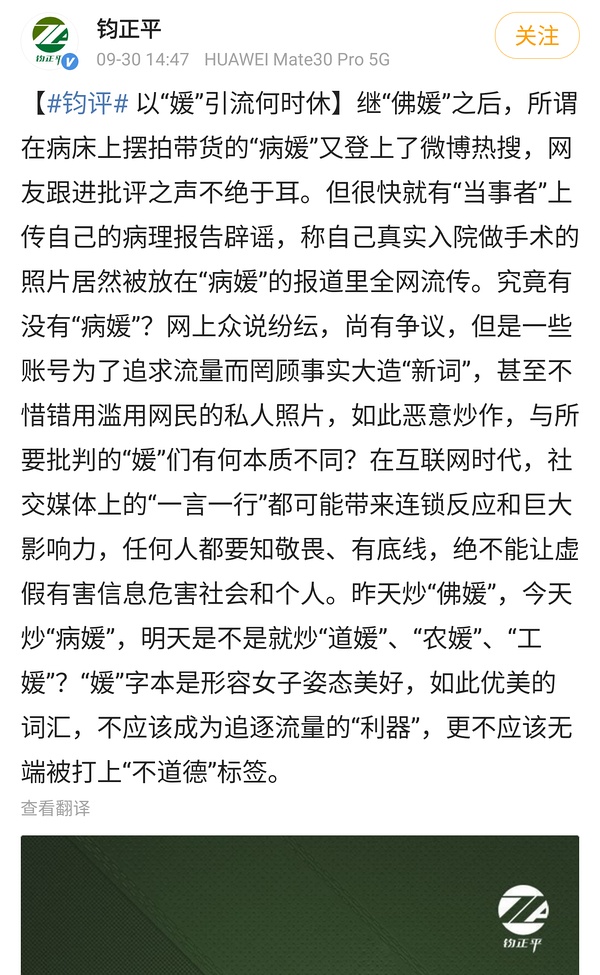 菌怔评昨天不点名痛批《健康时报》等媒体“错用滥用网民私人照片恶意炒作”,警告媒体要“知敬畏,有底线,绝不能让虚假有害信息危害社会”。评论还明确指出,“元字形容的是美好,如此优美的词汇,不应该无端被打上不道德的标签”。