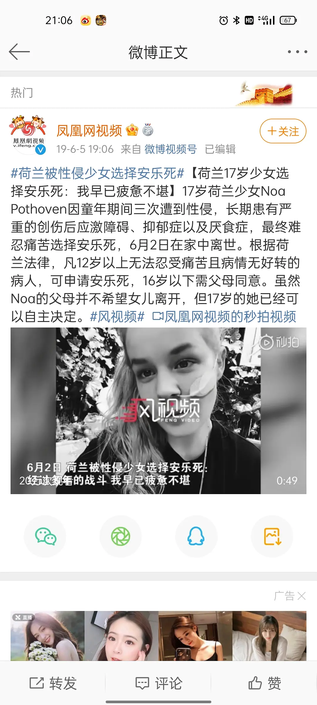 之前看新闻,一位欧洲的17岁少女因为厌世,申请安乐死,竟然得到通过。