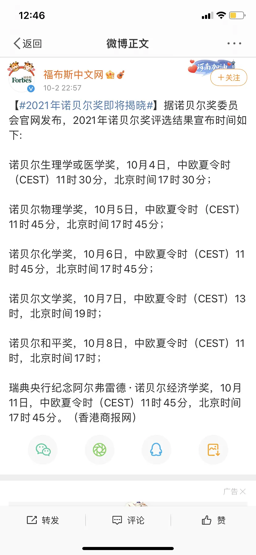 诺贝尔奖又要来啦