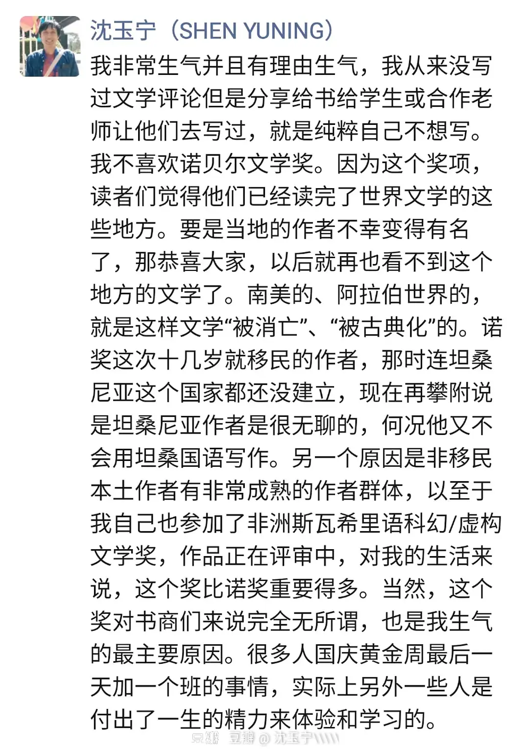 一位斯瓦西里语教授对本次诺贝尔文学奖的看法夜空边缘2021/10/07 18:25:35 Loading...也可以说是后殖民主义这一批判形式本身被被批判的主体所纳入了,成为了所谓的主流的一部分 Loading Spinner
