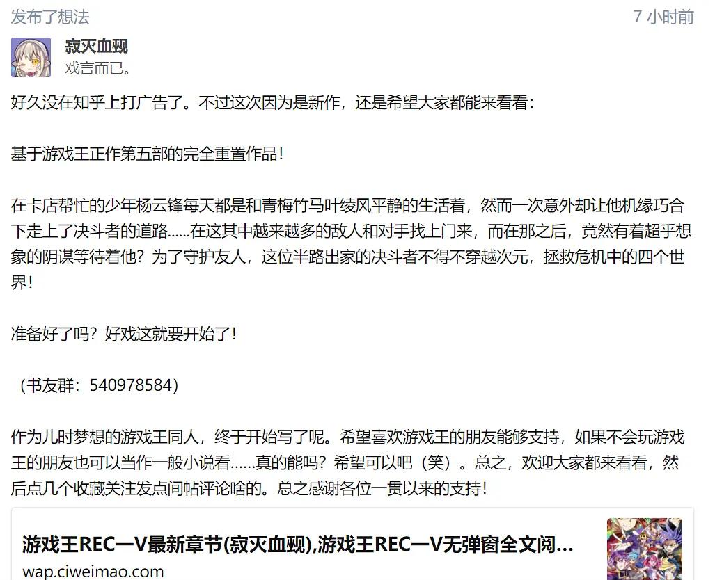 帮@寂灭血觋的新书打广告アッカリ~ン2021/10/08 11:05:41 由于@寂灭血觋 在鹳狸猿上班后惨遭30天待遇,故托我帮他宣传一下他的新书,欢迎大家多多订阅。希望@寂灭血觋 能早日归来。新书链接Loading... Loading Spinner