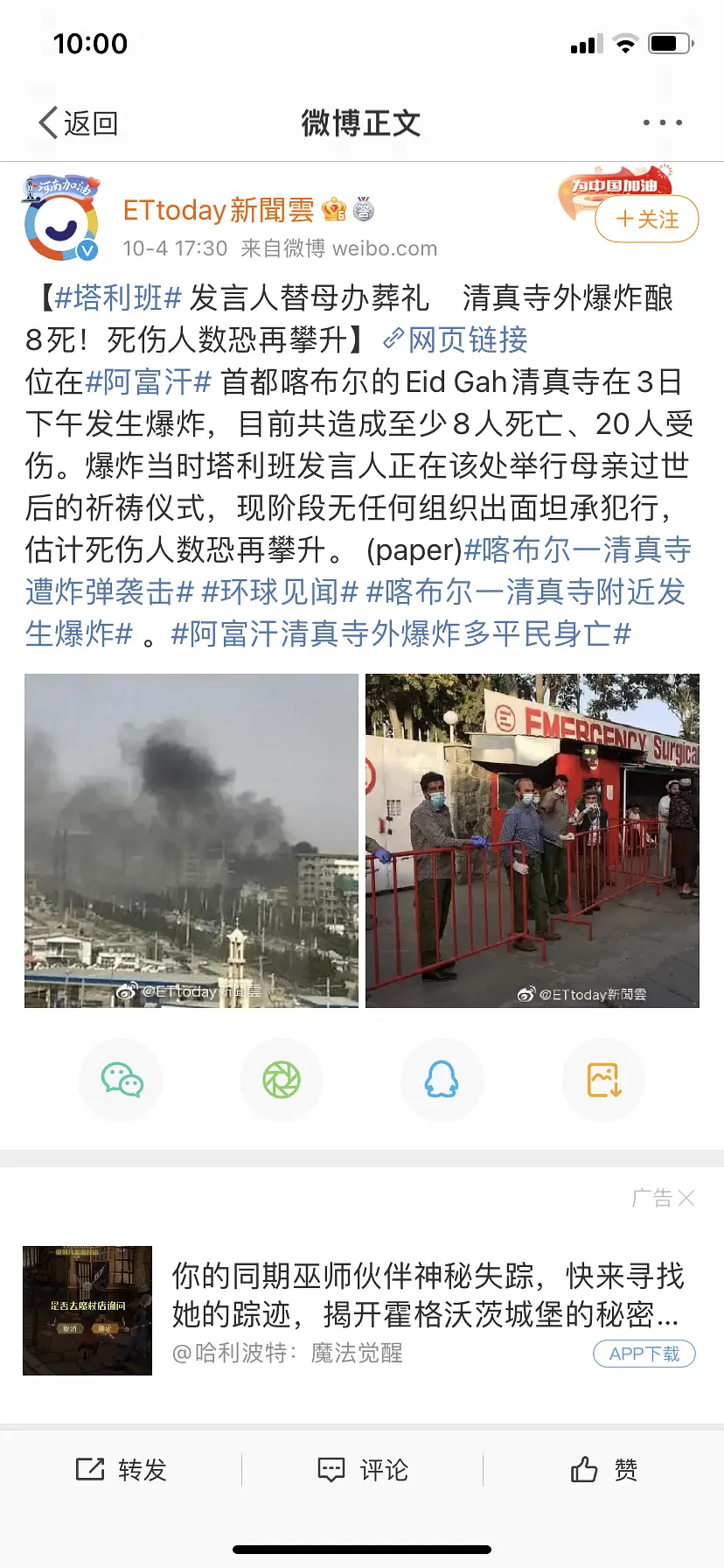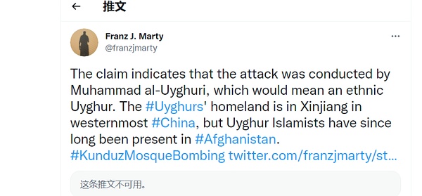 先不说推文内容的真实性,推文只是说被捕嫌疑人中有维族成员,顺手就提一下他们老家在哪、阿国也有分布,但哪里认定了恐怖分子的作案动机是“维族人报复塔利班与阿忠的交好"?