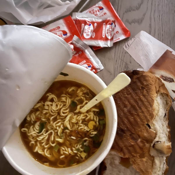下点小雨饿了纠结出去吃宵夜呢还是在家吃泡面捏