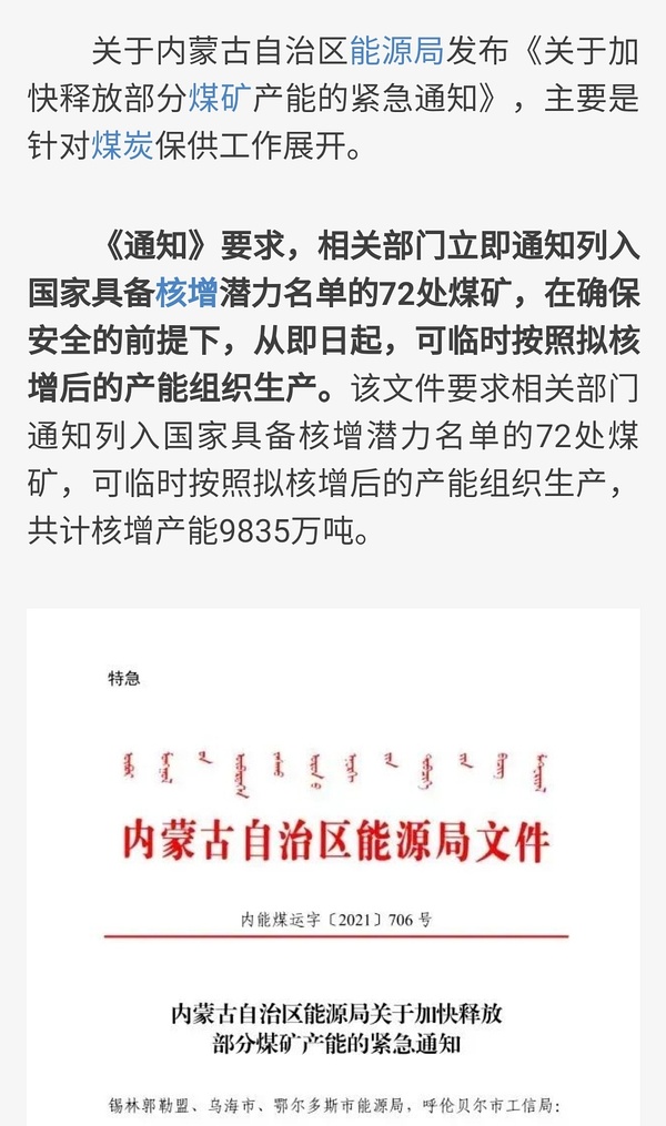 大力扩大煤矿产能