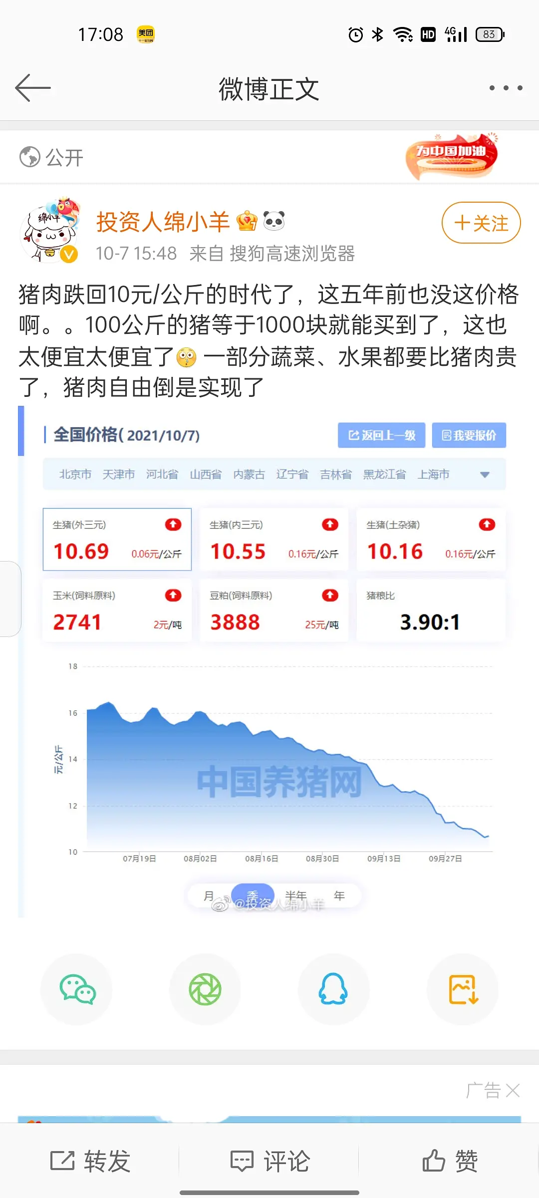 全球大放水下燃料和粮食价格迟早上涨,也会推动肉价上来的(毕竟运输需要油、饲养需要僵尸)