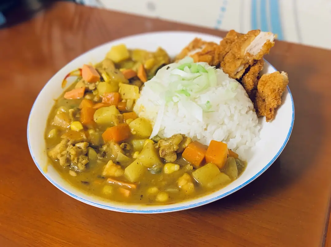 庆祝十十节,今天嗯造自制咖喱鸡排饭