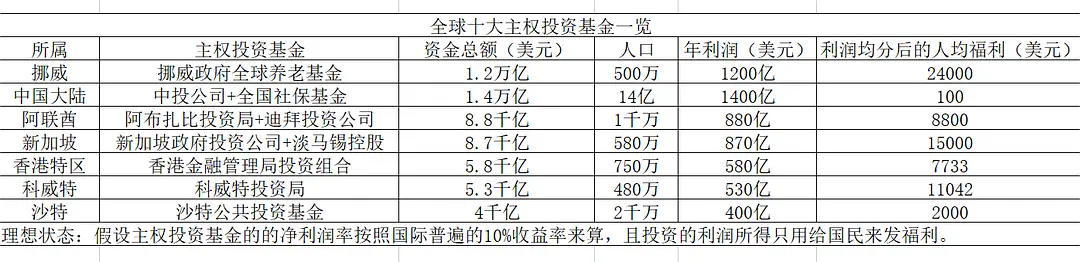 数据:全球十大主权基金和帼苠人均投资收益
