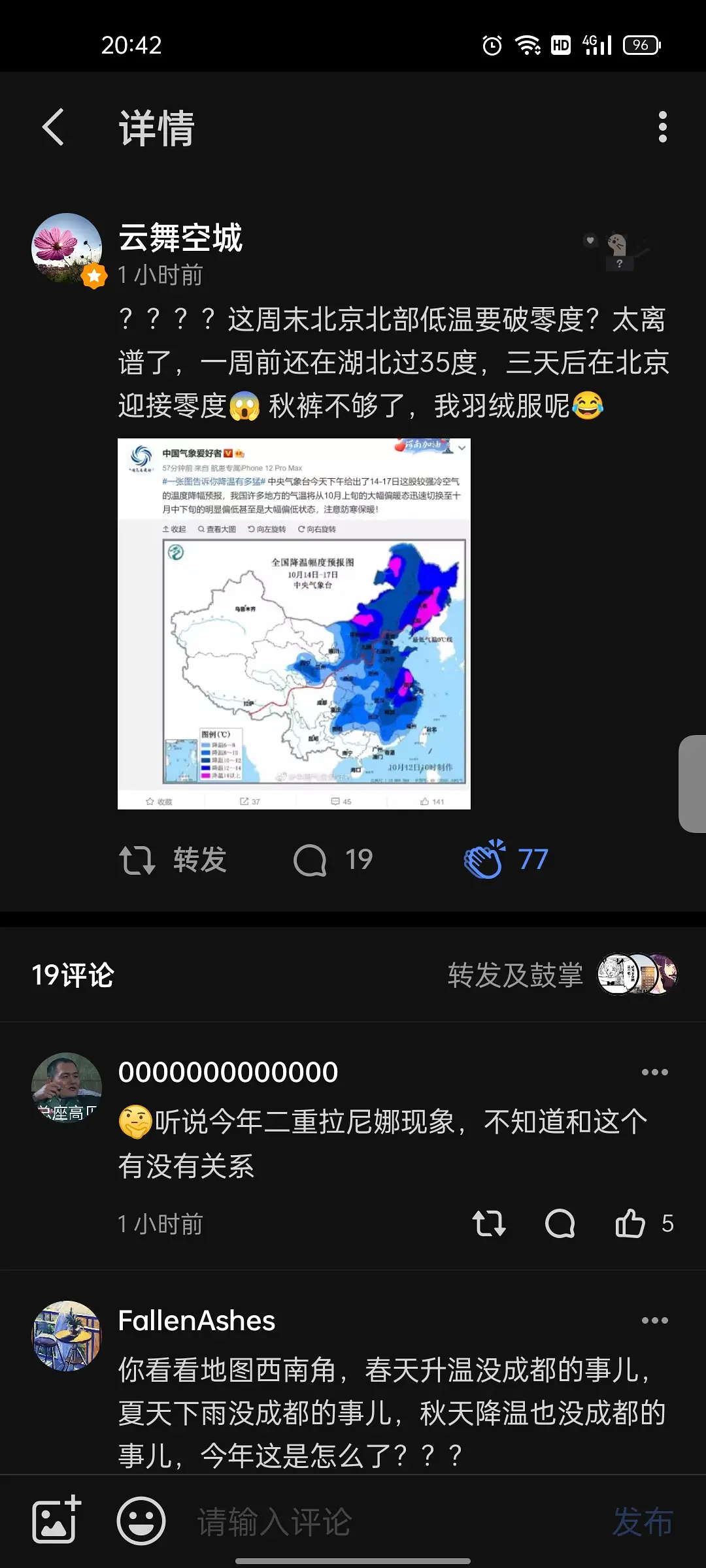 然而事实上,北满今年秋季的天气相对柔和了许多,几乎和华北地区持平…叶子至今甚至都没有完全变黄,所以降温幅度大一些很正常。
