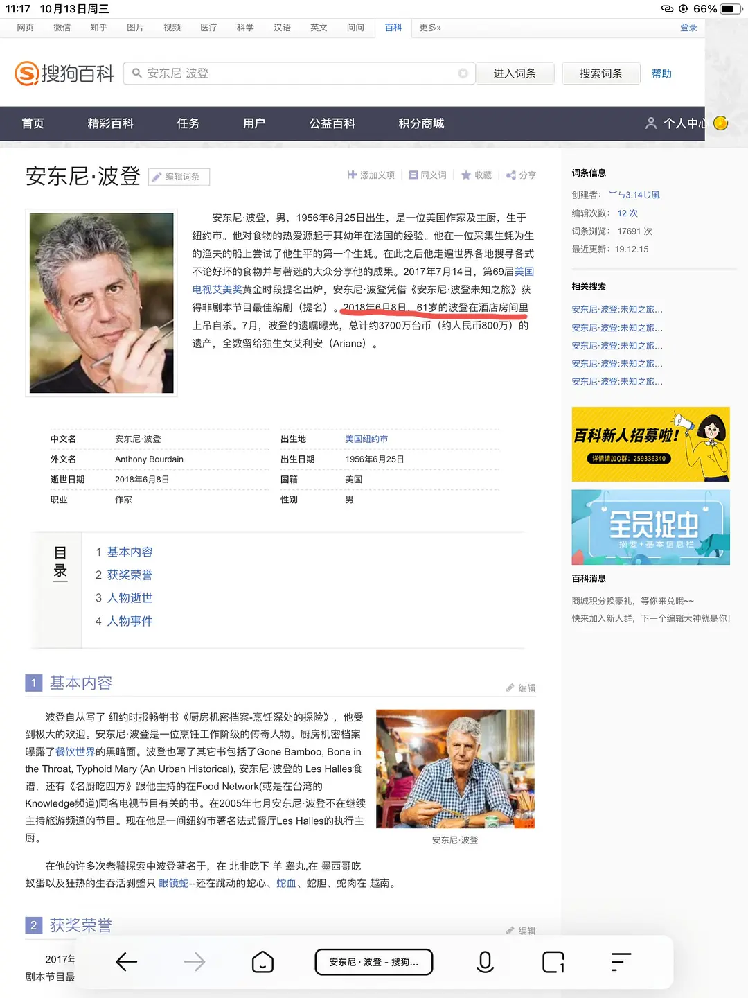他佬年轻时好像是干后厨的,环境据说很不好,当时写了不少揭露纽约餐饮业的随笔。