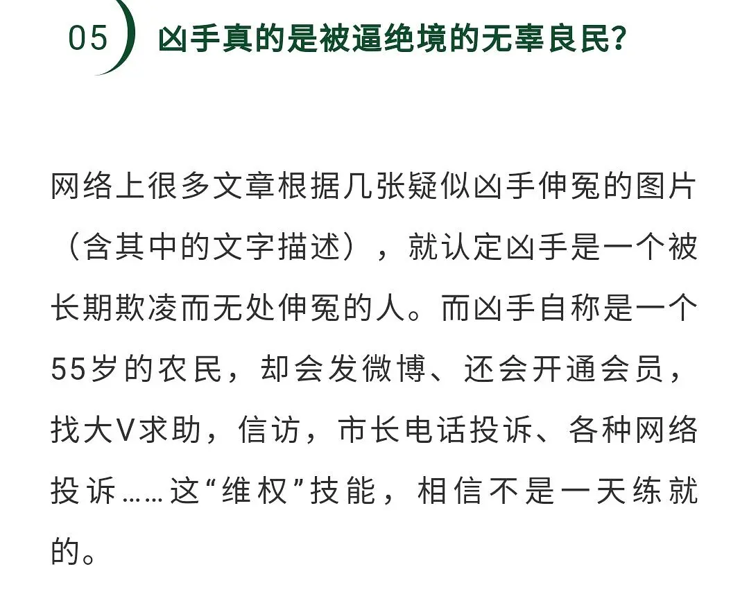 「凶手自称是55岁的农民,却会发微博、还会充会员」,这话真不是人话。
