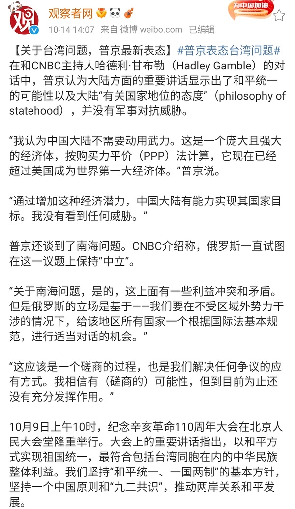 全网炒作这条,大概是为了解释为什么不动武。“爹都说我不用动武了,我们要有战略定力!”