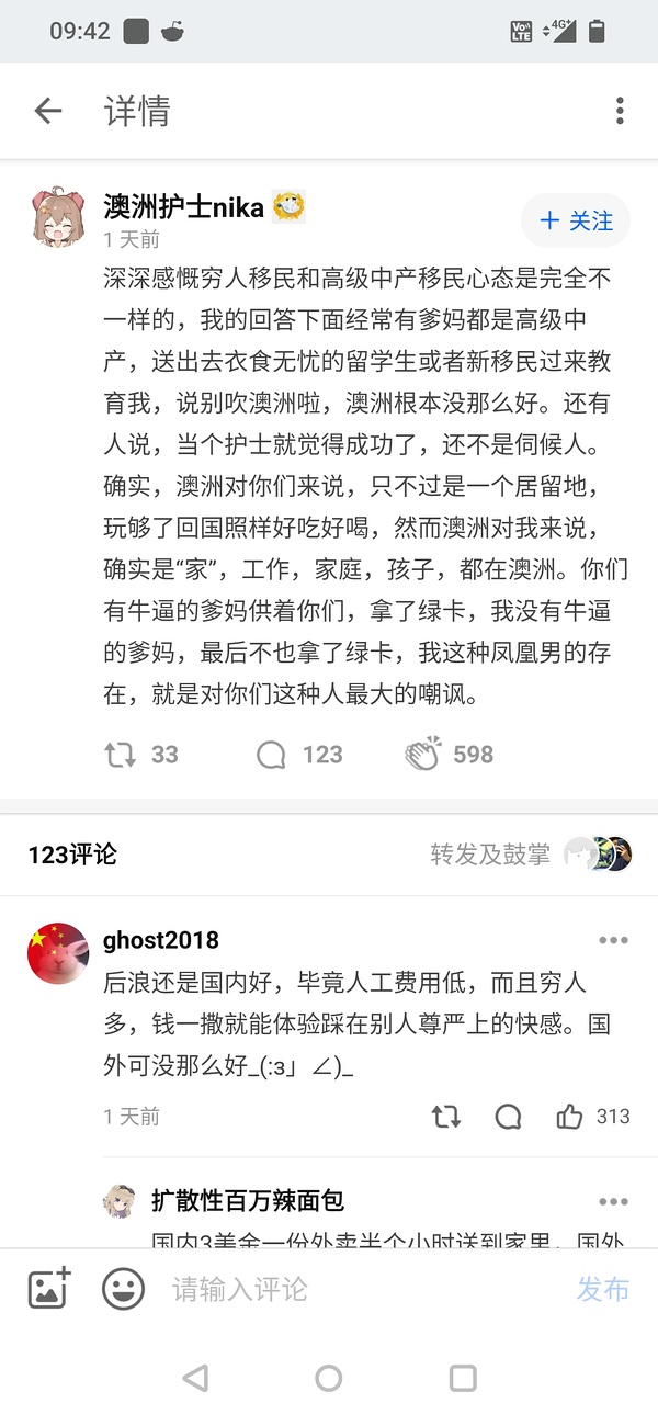 椎名唯华这位之前在契丹做的是医药销售,后run去米打工攒钱再run到澳学的医护拿了绿卡,蛮厉害的说实话