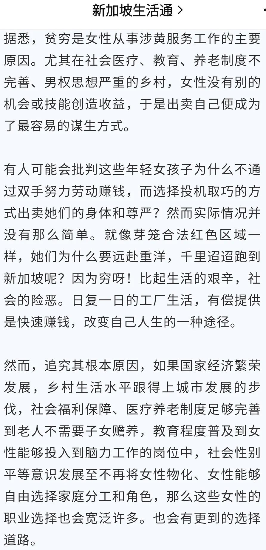 如果你禁止她们卖让她们进厂干活或者回家务农,薪资够不够另说,劳动强度还大枯燥重复,她们多半还不乐意呢;