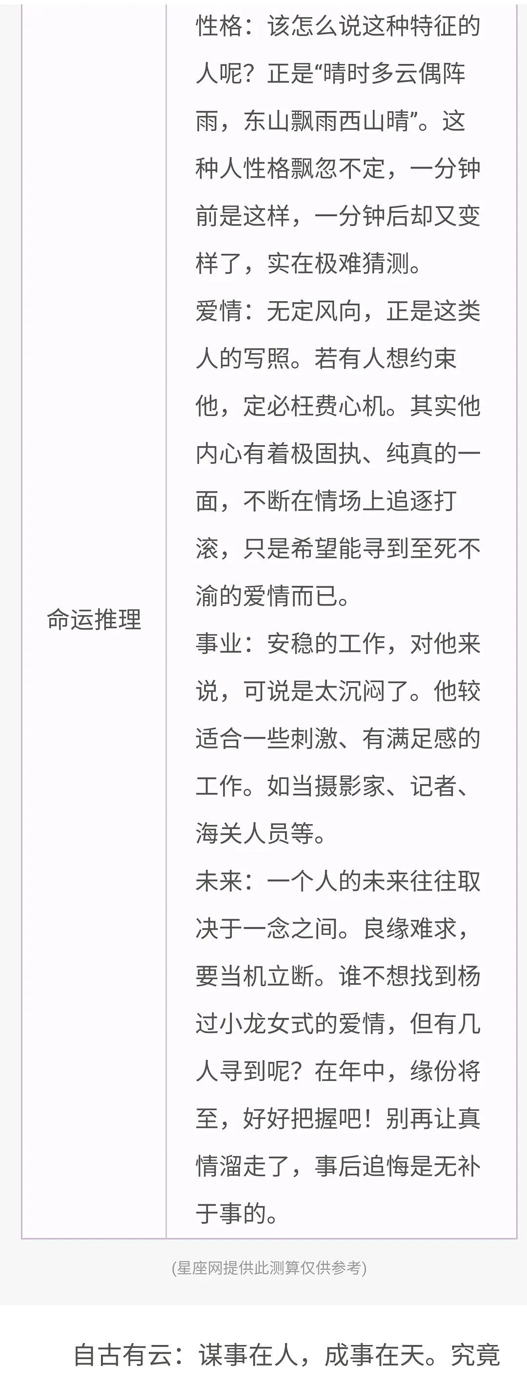 算命结果: